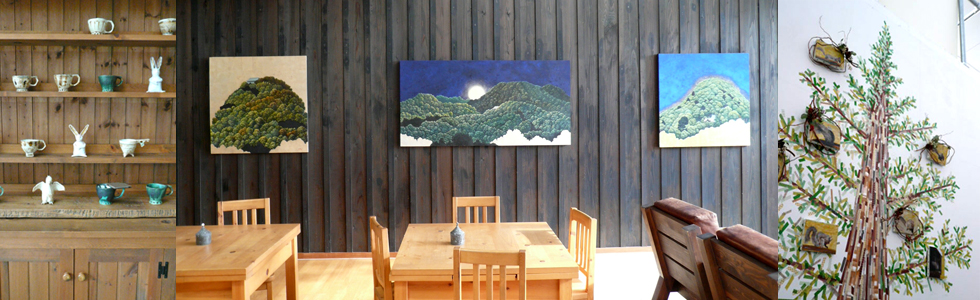 カフェスペースとも一体になっておりますので、お茶をいただきながらゆったりと展示作品を体感していただけます。